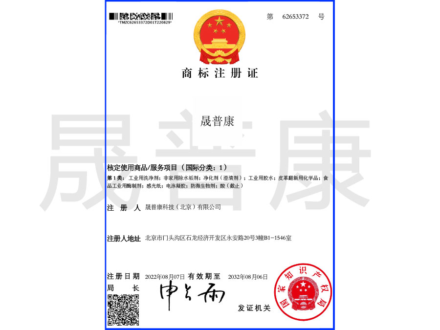 产品名称: 晟普康商标注册证